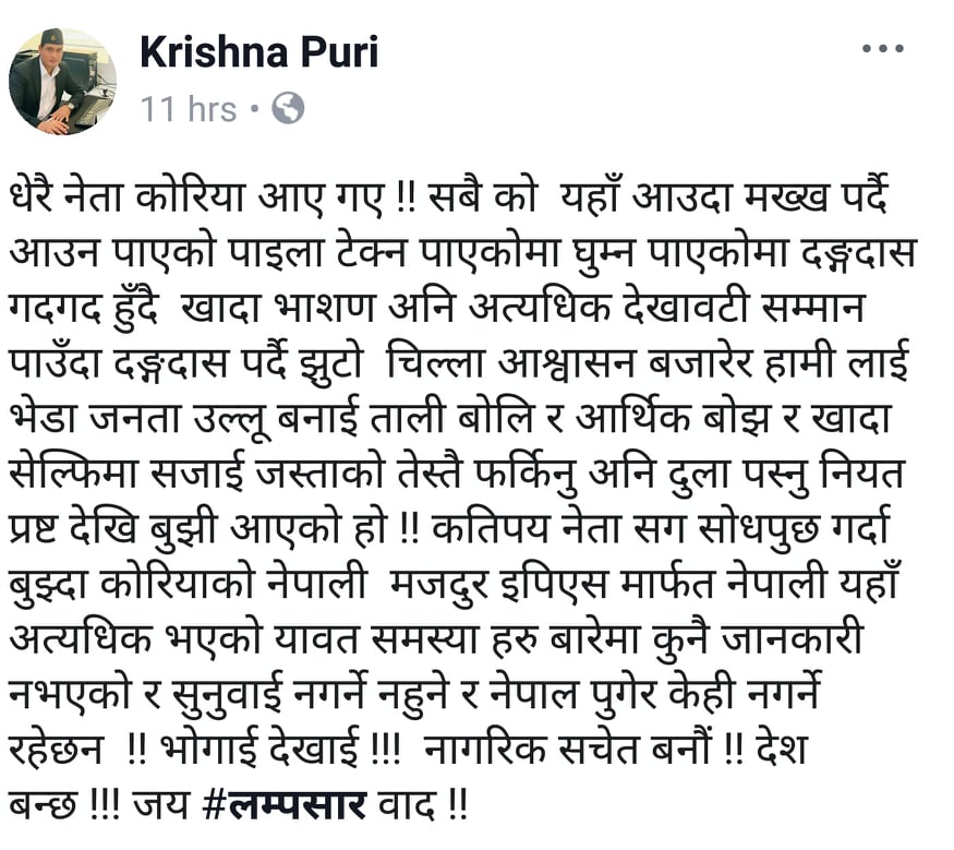बिष्णु पौडेल कोरिया आएको फोटो देखेपछि सामाजिक संजालमा यस्ता टिप्पणीहरु भएका छन् हेर्नुहोस